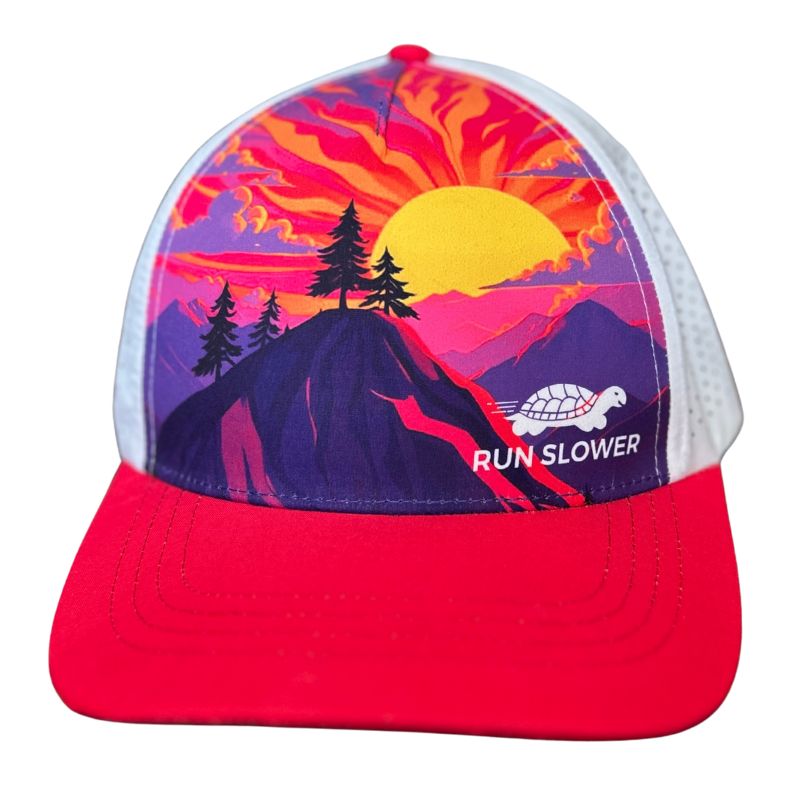 This running trucker hat is designed for running and features a wicking internal sweatband with performance fabrics to keep you cool. The 5 paneled construction creates a streamlined look that is functional for working out and beyond.