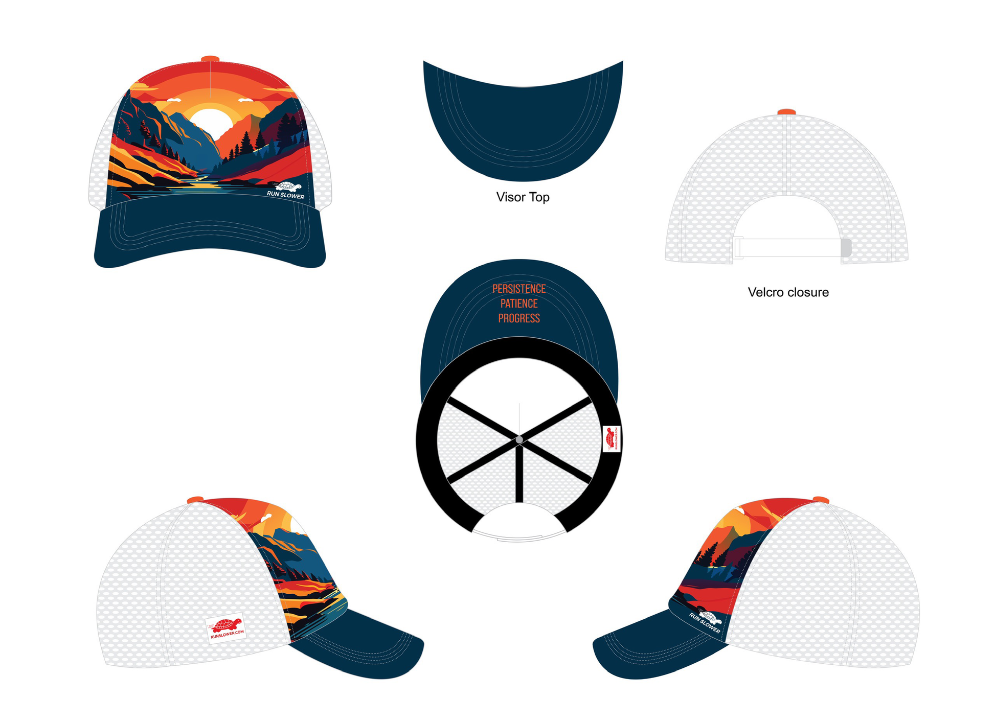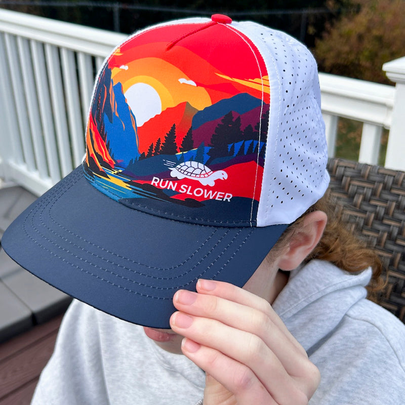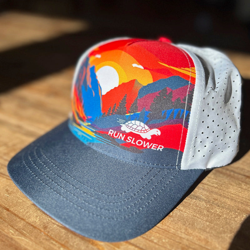 The Running Trucker provides all the comfort of a Run Hat with the structured front panels and bill of a Trucker. Laser cut panels provide the breathability needed for high output efforts.