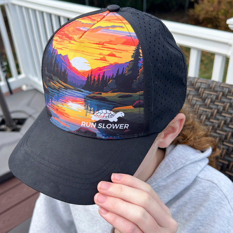 The Running Trucker provides all the comfort of a Run Hat with the structured front panels and bill of a Trucker. Laser cut panels provide the breathability needed for high output efforts.