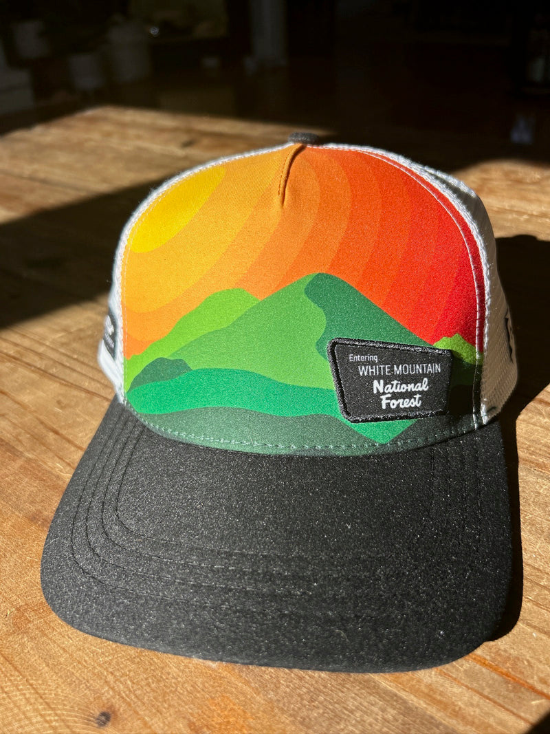 The White Mountains New Hampshire Performance Trucker Running Hat.